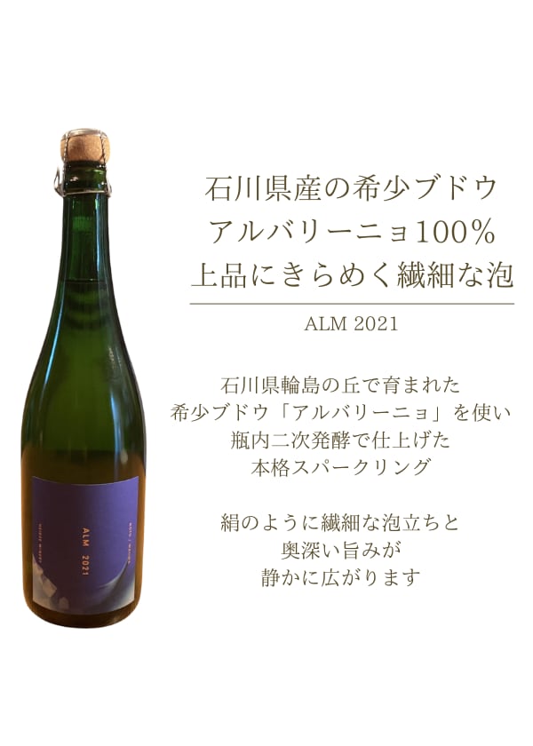 瓶内二次発酵でていねいに仕上げた本格スパークリングワイン、ALM 2021。