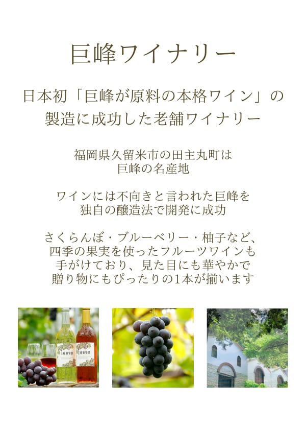 福岡県田主丸町の特産である巨峰から造られた、巨峰ワイナリーの代表的な1本。