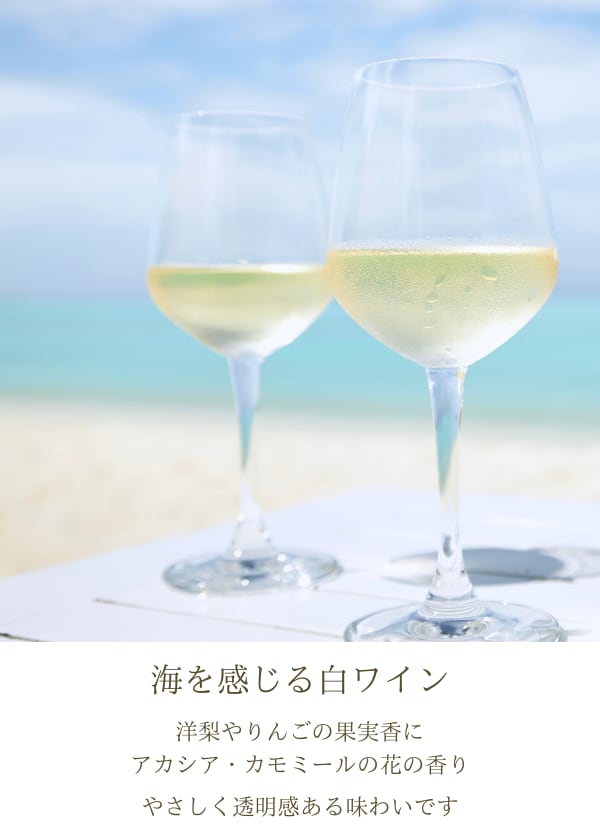グラスに注げば、りんご・洋梨・桃・アンズなどの熟した果実と、アカシアやカモミールの花、そしてほんのりと海を思わせるヨード香や塩のニュアンスが広がります。