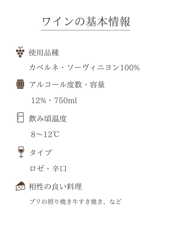 カベルネ・ソーヴィニヨン100%、大人の本格ロゼワイン。