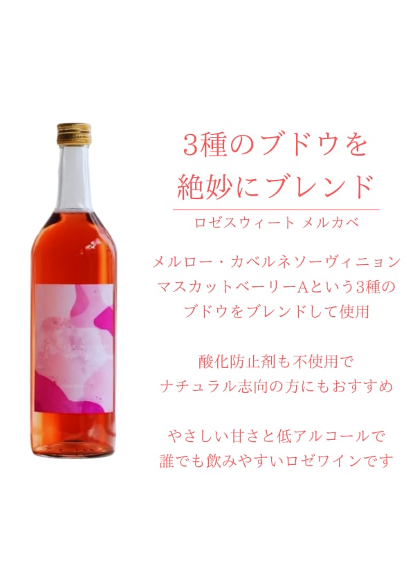【ぶどうの甘みを凝縮】ロゼスウィート メルカベ:ぶどう本来の甘みを活かしたロゼワイン