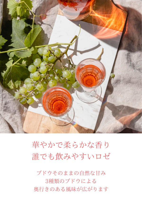 ぶどうの優しさをそのまま閉じ込めた、甘口ロゼワイン。