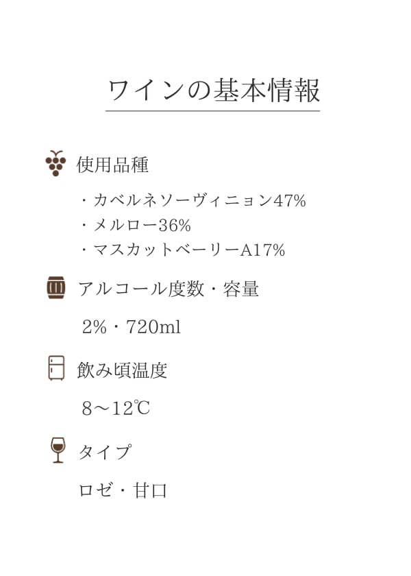 冷やして飲めば、まるでぶどうのスイーツのように軽やかに楽しめる1本です。
