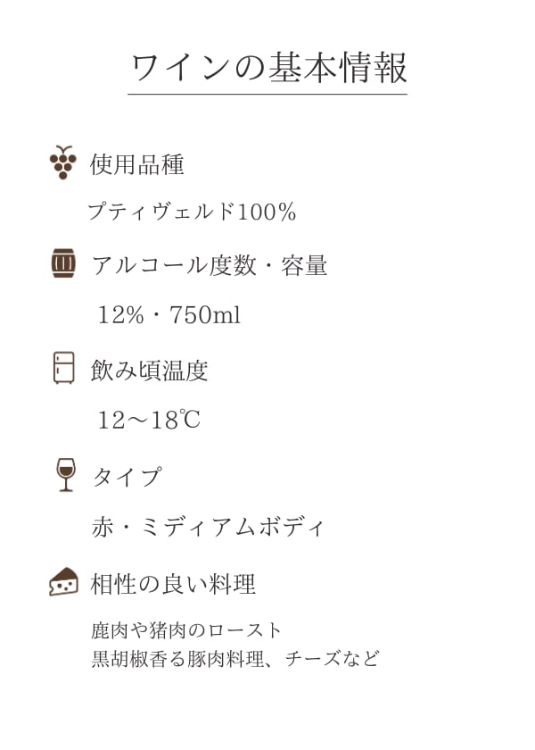 フランス原産の希少ぶどうプティヴェルド100%使用