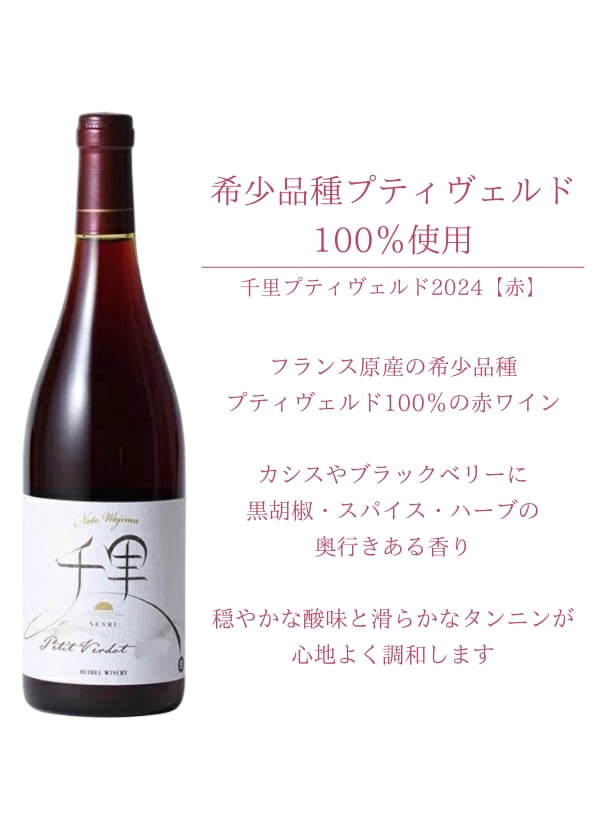 「千里プティヴェルド2024」は石川県輪島市・門前町で育てた希少品種プティベルドを、100%で使用した赤ワインです。