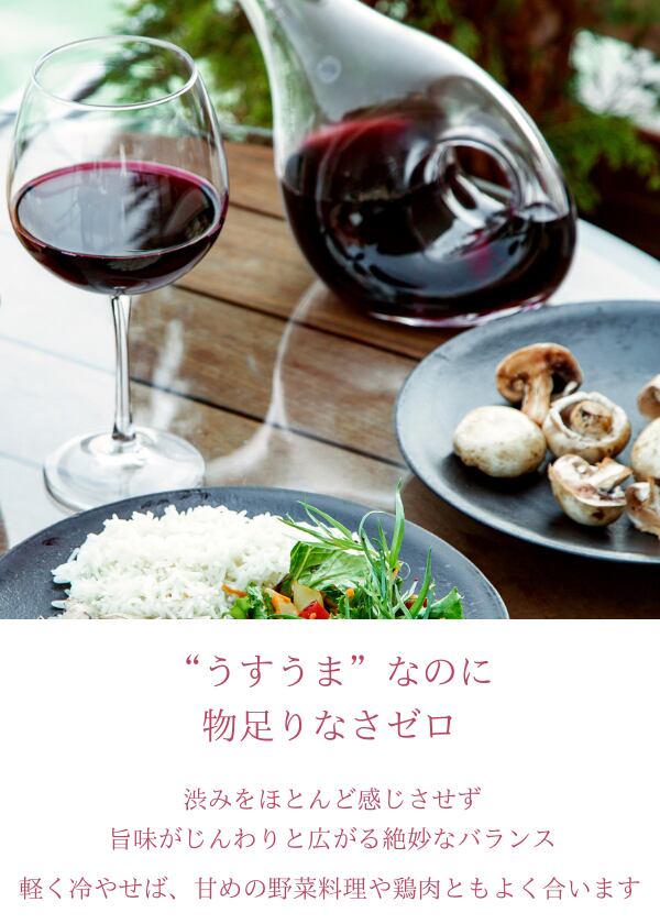 渋みはほとんど感じず、やさしい酸味と果実味が喉を通る、“うすうま”スタイル。
