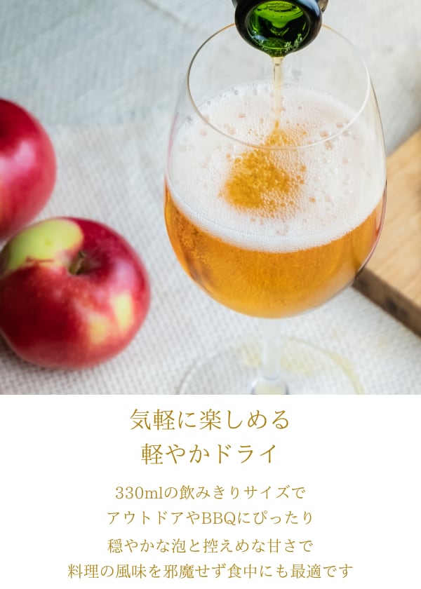 小瓶の飲み切りサイズでごくごく飲める、やさしい発泡とドライな味わいが魅力です。
