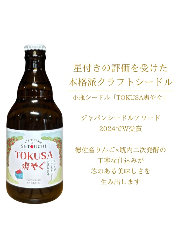 【軽やかな辛口】小瓶シードル「TOKUSA爽やぐ」 330ml:アワードで星2つ受賞
